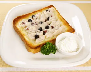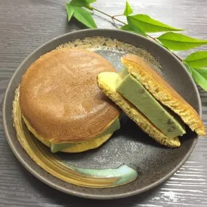 - 3のパンケーキに1の胡麻どうふをはさんで出来上がりです。